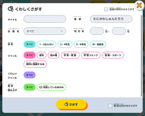 学校図書館にはない本を、『Yomokka!』で探す。授業で扱った著者の他作品に触れる機会を与え、こどもたちの読書の幅も広げたい